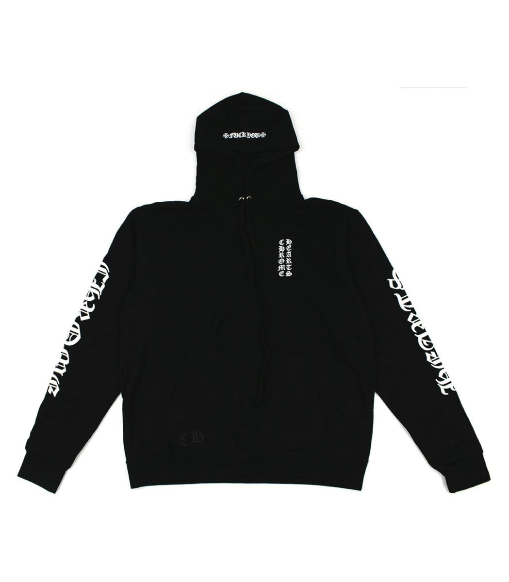 Elevate your streetwear game with the Chrome Hearts Vertical Logo FU Hood Hoodie. This iconic piece features the bold vertical logo on the back, embodying the rebellious spirit of the brand. Crafted from premium cotton, this Chrome Hearts Hoodie offers unmatched comfort and style, perfect for layering or making a statement on its own. The front showcases the signature "FU" design, adding an edge that sets it apart from other Chrome Hearts Hoodies. Whether you're a long-time fan or new to the brand, this Hoodie Chrome Heart is a must-have for anyone looking to combine luxury with attitude.