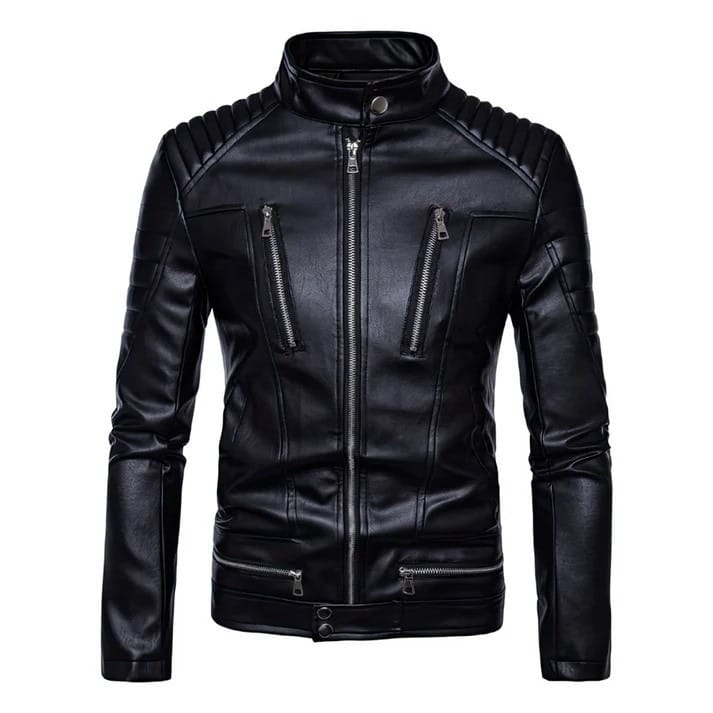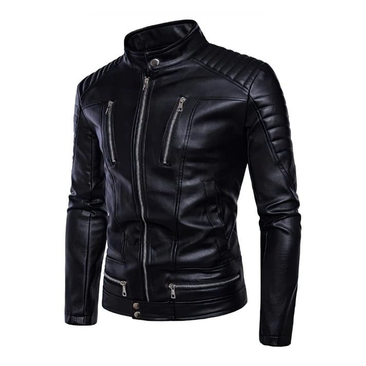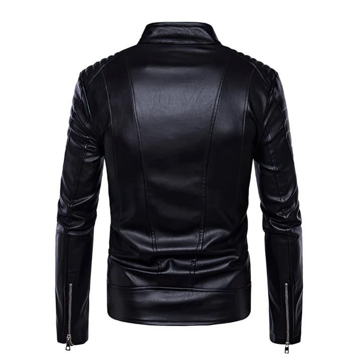 Featuring a sleek slim-fit design, it’s windproof and warm—ideal for fall, spring, and winter. The stand collar, zippered cuffs, and classic biker details add a sharp, modern touch.